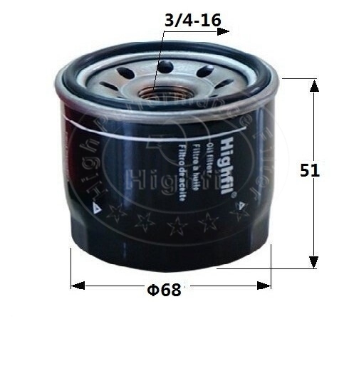 Name: Oil FilterPart No.: TH6842Remark: Height (mm):51Inside diameter (mm):61Outer Diameter (mm):68Outer Diameter 1 (mm):65Parm ():68X51 3/4-16Thread sizes ():3/4-16